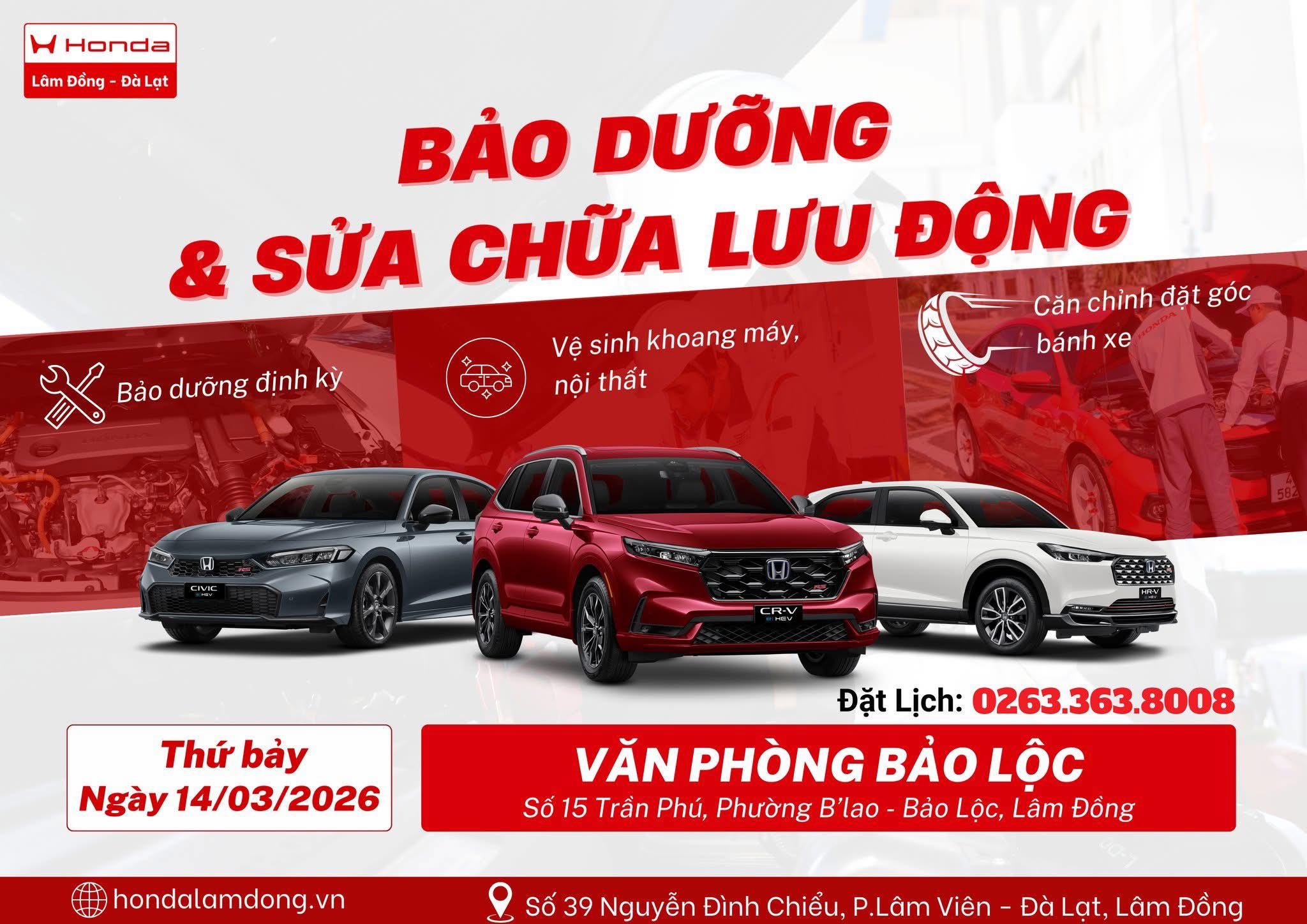 Bảo Dưỡng & Sửa Chữa Lưu Động Honda Tại Bảo Lộc – Dịch Vụ Chính Hãng Ngày 14/03/2026.